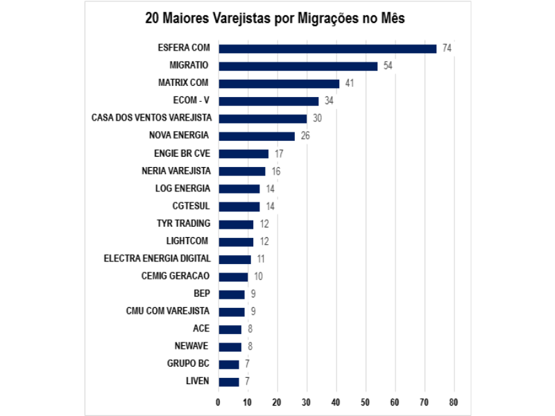 Logo após o grupo líder, o ranking revela um conjunto de comercializadoras com forte presença nas migrações do mês.